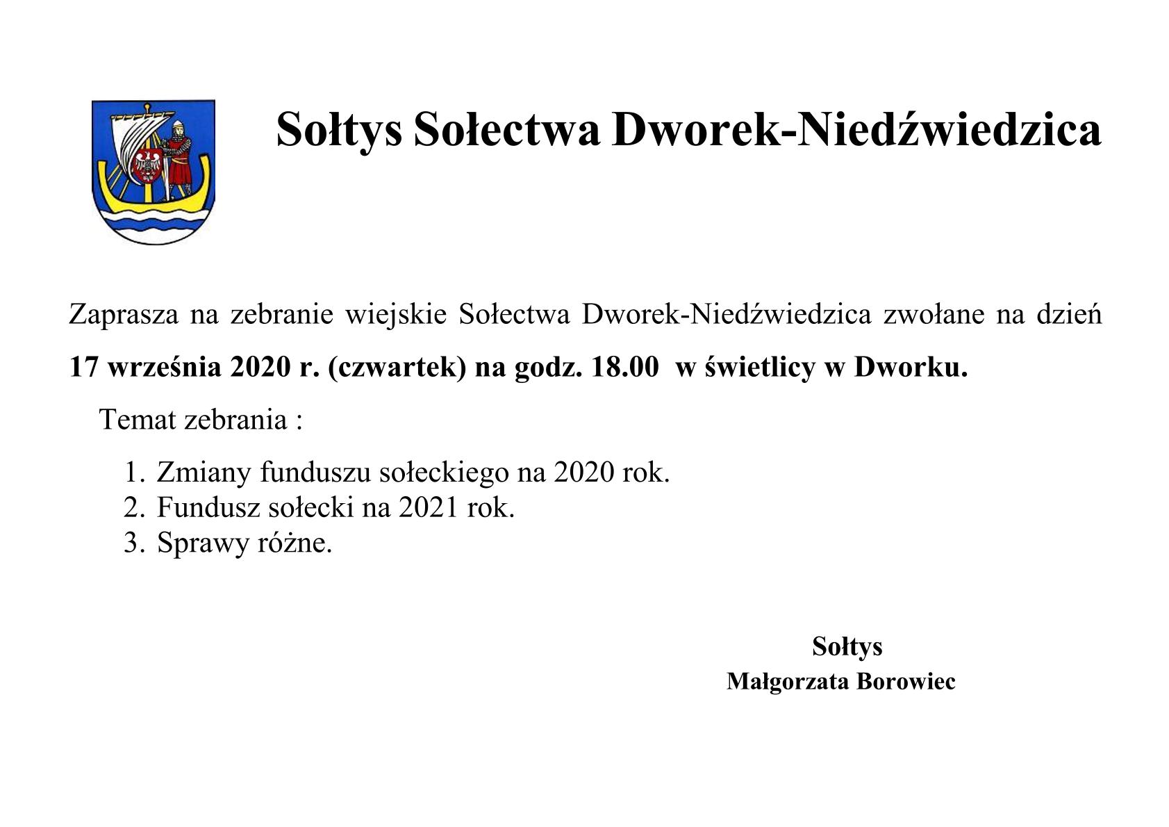 Zebranie wiejski sołectwa Dworek-Niedźwiedzica