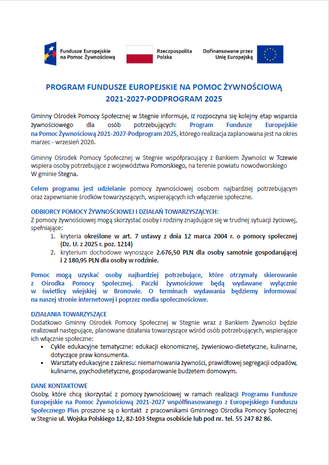 Program Fundusze Europejskie Na Pomoc Żywnościową 2021-2027-Podprogram 2025